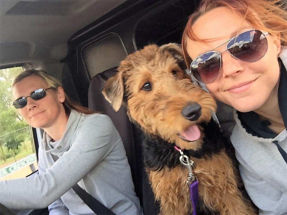 Penny having a treat in the front of the van, living it large thinking she is 'one of the girls'. She did take it to far though when she started shouting 'Girls rule and boys drool' out of the window!!! hahaha